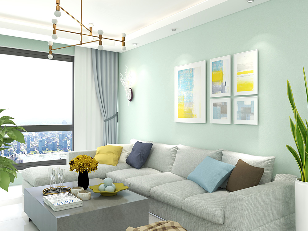 SLT34-浅绿色T竹炭纤维无缝墙布装修案例效果图